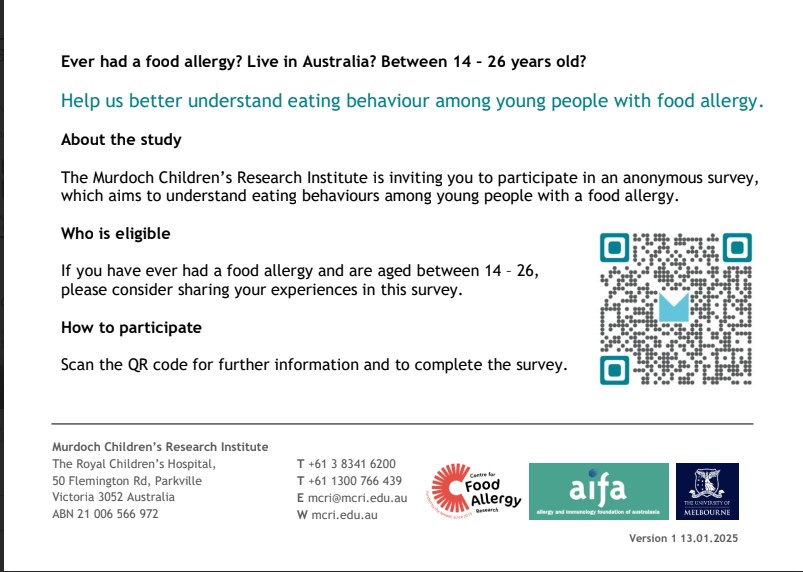 This research will help us understand how food allergies affect eating habits in young people – and how we can better support them